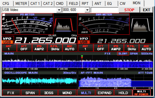 - Aggiunta la possibilità di comandare il PTT per RX TX sia tramite CAT che tramite COMxx RTS/DTR a scelta attivabile da <MOUSE CLICK> oppure con tasto <SPACE> per i comandi MENU DATA/PTT USB/REAR/FRONT/MIC necessari